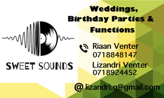 Services CATERING Catering will only be done by Barnyard Venue BAR At Barnyard we will be running a cash bar. PHOTOGRAPHERS DECOR & FLOWERS PREFFERED SUPPLIER Labuschagne Photography Tel: 084 665 3611 Cindy Hatting Tel: 072 841 4339 Natassia van Staden Tel: 084 586 4791 Lourens de Beer Photography Visit Website Blomme Vir Almal Tel: 017 811 1633 MNE VERHURINGS Tel: 017 811 6439 Marie Se Blomwinkel Tel: 017 819 1500 ANNATJIE EN DONÉ Tel: 074 898 7118 DJ's DIGITAL INVITES​ PREFFERED SUPPLIER Sweet sounds Tel: 071 884 8147 Spectacular Events Tel: 082 836 3980 JOHAN MARITZ Tel: 082 551 9173 JUANDRE LABRECHT Tel: 082 457 4654 Genlead.co.za Tel: +27 17 004 0142 Click here Venue read more